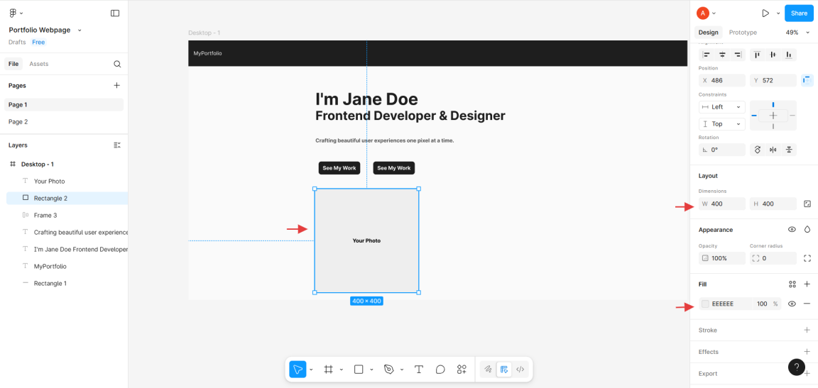 Here's step-by-step tutorial to design a simple hero section for a modern personal portfolio website (a common first project).