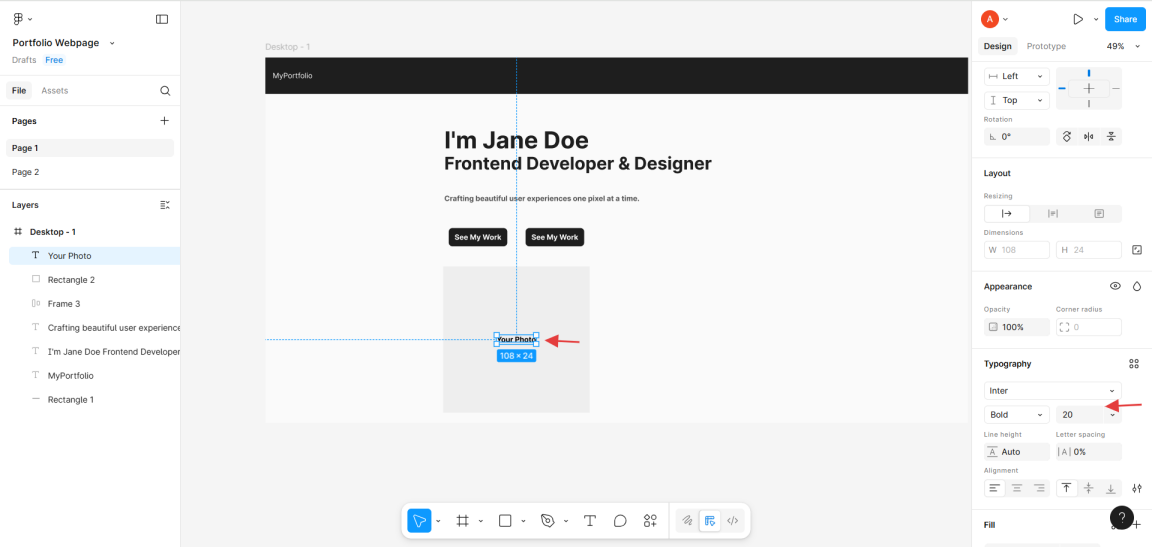 4. Add some Text : Type “MyPortfolio” using the T tool (Press T).
